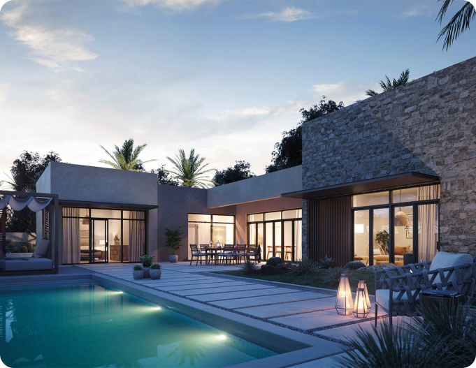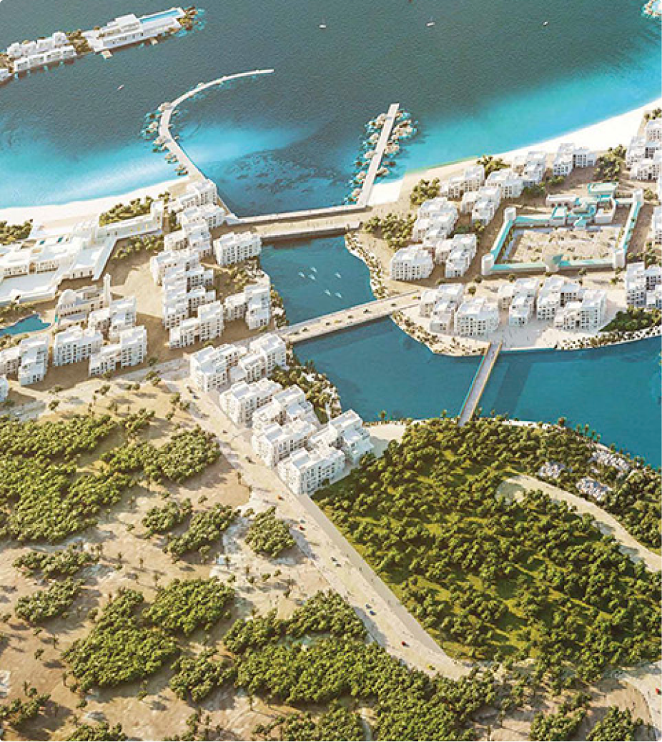 In the area there are elegant villas in gated communities and designer apartments with 1st, 2nd, 3rd and 4th bedrooms. Meet the sunrises on the Persian Gulf coast, sunbathe on the snow-white beaches and enjoy a peaceful life among nature away from the hustle and bustle.